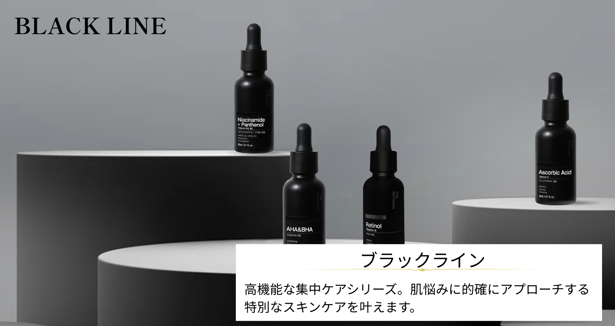THE POTIONS は、お客様ご自身が、自分だけのスキンケアを組み合わせてお使いいただける商品展開となっており、厳選成分のみを配合した美容液を中心に展開されています。